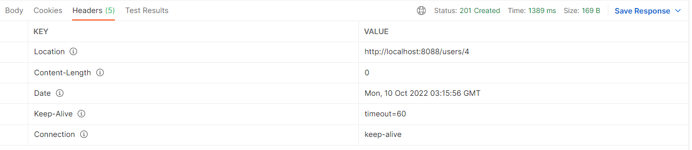 사용자에게 특정한 URI를 전달할때 ServletUriComponentsBuilder 클래스를 사용한다. ServletUriComponentsBuilder 반환값은 URI로 받고, 컨트롤러에서 반환 타입은 ResponseEntity로 한다. @PostMapping("/users"..