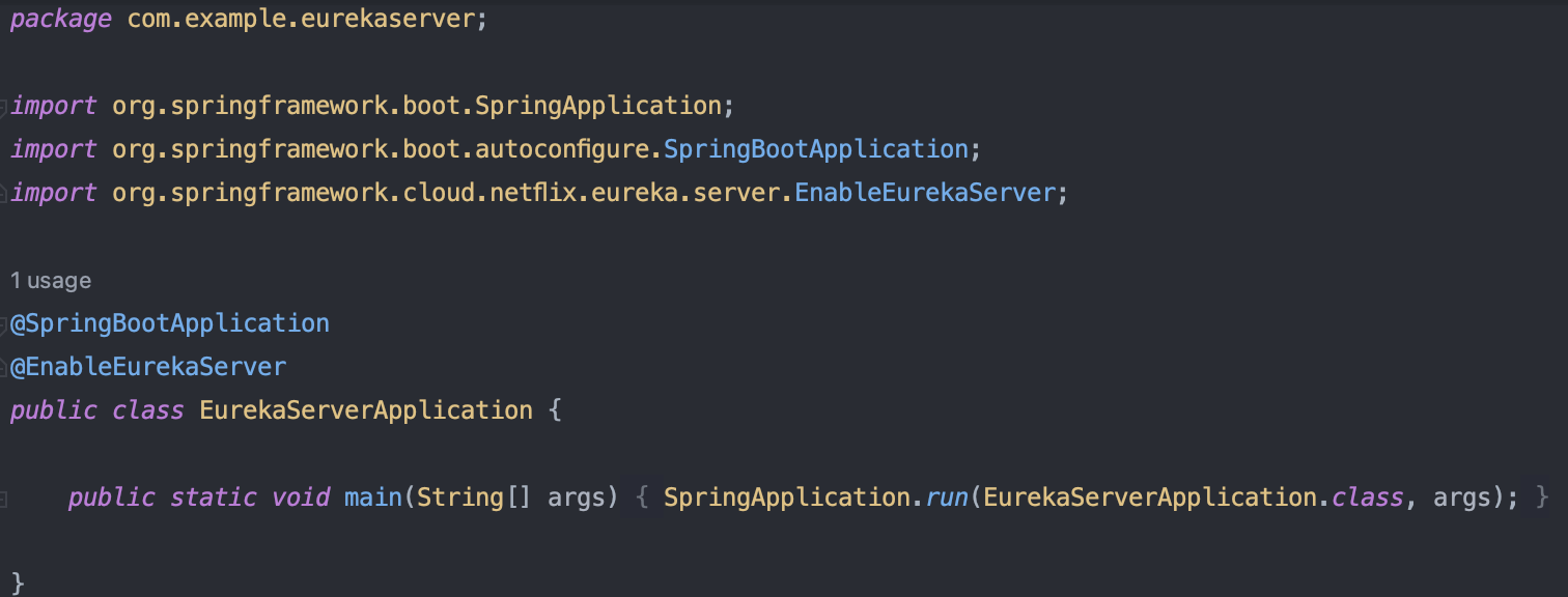 - Application에 @EnableEurekaServer 어노테이션 붙이기