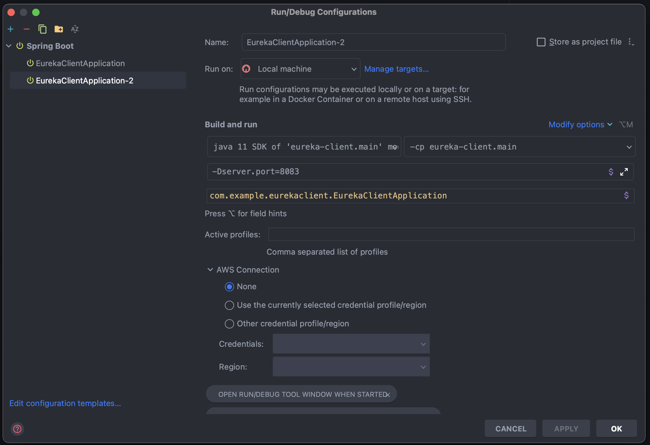 Run 실행하면 2개의 인스턴스가 정상 작동중인 것을 확인할 수 있다.