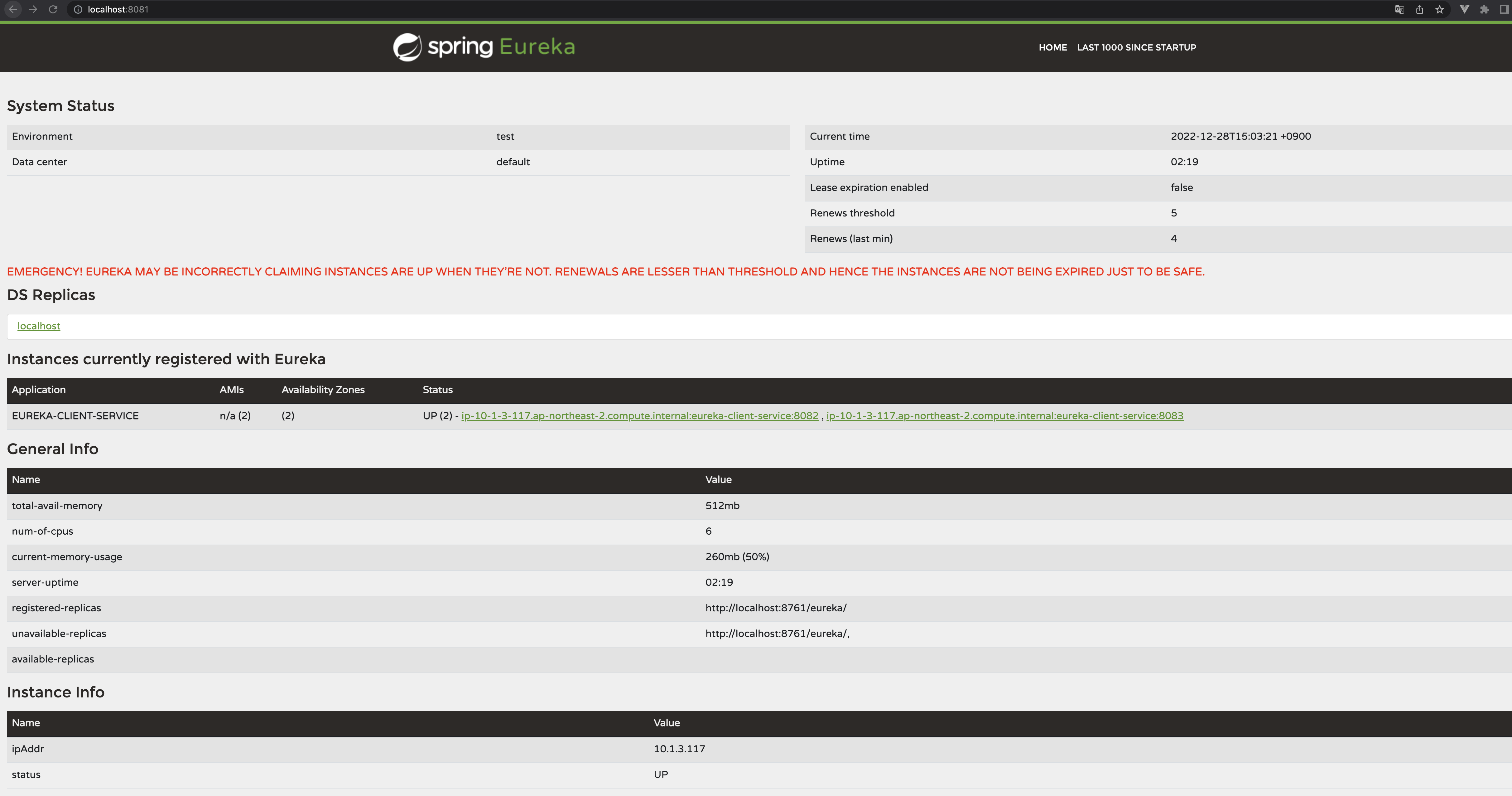 랜더포트로 설정하는 경우 유레카 서버에서 인스턴스 {ip}{service name}{port} 가 들어가는데 0이 들어가기 때문에 1개 밖에 안생긴다.